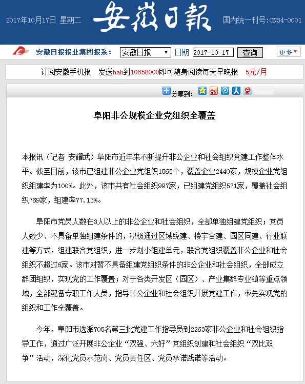 阜陽市黨員人數(shù)在3人以上的非公企業(yè)和社會組織,全部單獨組建黨組織;黨員人數(shù)少、不具備單獨組建條件的,積極通過區(qū)域統(tǒng)建、樓宇合建、園區(qū)同建、行業(yè)聯(lián)建等方式,組建聯(lián)合黨組織,進(jìn)一步劃小組建單元,聯(lián)合黨組織覆蓋非公企業(yè)和社會組織不超過6家。該市對暫不具備組建黨組織條件的非公企業(yè)和社會組織,全部成立群團(tuán)組織,實現(xiàn)黨的工作覆蓋;對于各類開發(fā)區(qū)(園區(qū))、產(chǎn)業(yè)集群專業(yè)鎮(zhèn)等重點領(lǐng)域,全部配備專職工作人員,指導(dǎo)非公企業(yè)和社會組織開展黨建工作,率先實現(xiàn)黨的組織和工作全覆蓋。